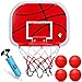 Portable and Flexible Mini Basketball Hoop Set. Easy to carry and complete hardware. This set comes with a mini backboard, a steel-rim basket, 3 rubber basketballs, an air pump, an electronic counter, 6 thick foam strips, and complete hardware. So it is convenient for you to install it anywhere and will not take up too much house space.