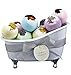 DELUXE BATH BOMB SET ♥ This spa gift basket has everything a woman needs to feel pampered and loved. It includes 10 x 100g bath bombs in Pink – Cherry Blossom Fragrance, Green – Magnolia Jasmine Fragrance, Purple – Lavender Jasmine Fragrance, Yellow – Honey Almond Fragrance and Blue – Ocean Bliss Fragrance. Packed in an adorable bath tub shaped gift basket, it also has a gift note card for you to personalize it.