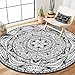 Large Space & Comfort Round Area Rug: The chic bohemian round rug is 6ft(180CM) in diameter, that enable you get enough space, the 0.6inch(1.5cm) microfiber faric, surprisingly soft for being touch plush yet stand up to high traffic, which is comfortable, warm and durable, providing great comfort for your bare feet.