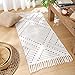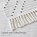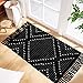 RUG SIZE: Size at 2 x 4.3 feet (Tassel Not Included). Tassels is about 4 inches. Black and white woven with extra snazzy knotted fringe tassels, vibrant color, extremely durable.