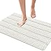 【Ultra Absorbency】The water absorption capacity of this shower mat can reach up to 3 times its own weight, which helps absorb dripping water from your wet feet when you get out of the tub, shower, or getting ready by the sink. The water also do not stay on the surface on the bath mat.