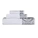 ELEGANT DESIGN: Towel set includes a unique textured towel design with a colored medallion border; each towel brings sophistication to any bathroom space; attached hanging loop allows you to easily hang your towel