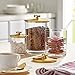 [See-Through Design] The sleek crystal glass allows you to see what is inside and easily monitor whether your food has run out without removing the lid. Notice: The glass jars is safe in dishwasher while the wood lid is hand washing only!