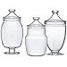 [MULTIPLE USES] A must-have apothecary jar set to keep various items: candies, snacks, decorative items, Q-Tips, cotton balls, beauty blenders, makeup sponges, bath salts, bath sponges, shower balls, loofah pads, laundry detergent pods. Suitable for multiple uses: candy buffet, wedding display, decorative jars, bathroom canisters, vanity organizers.