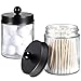 STORAGE MADE STYLISH - This sleek vanity qtip holder provides a decorative accent to your powder room, bathroom vanity, makeup table and more; The unique design with removable lid gives you a variety of storage options.This canister is great for storing and organizing cotton swabs, ovals and rounds, makeup applicators, cosmetic sponges, wedges, guest soaps, bath bombs, balls, salts and more.It is easy to access the items inside, but*LIDS CANNOT SCREW ON THE JAR*.