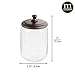 STORAGE MADE STYLISH: This unique canister stores needed vanity staples and provides a decorative accent to your powder room, bathroom vanity, makeup table and more; The modern design with removable lid gives you a variety of storage options; The canister apothecary jar has a removable lid and a wide mouth to make accessing bathroom necessities and accessories simple; This double jar is stackable so that you can use multiples and create a custom storage system that works for you