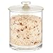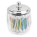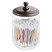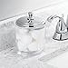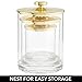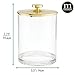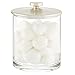 KEEP IT NEAT: The vanity jar has a removable lid and a wide mouth to make accessing bathroom necessities and accessories simple; Easily find what you're looking for with the clear construction; This canister is great for storing and organizing cotton swabs, ovals and rounds, makeup applicators, cosmetic sponges, wedges, guest soaps, bath bombs, balls, salts and more