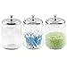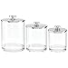 STORAGE MADE STYLISH: These sleek canister apothecary jars store needed vanity staples and provides a decorative accent to your powder room, bathroom vanity, makeup table and more; The modern design with removable lid gives you a variety of storage options; This canister has a removable lid and a wide mouth to make accessing bathroom necessities and accessories easy and simple; Set of 3