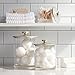 KEEP IT NEAT: The vanity jar has a removable lid and a wide mouth to make accessing bathroom necessities and accessories simple; This canister is great for storing and organizing cotton swabs, ovals and rounds, makeup applicators, cosmetic sponges, wedges, guest soaps, bath bombs, balls, salts and more