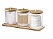 Coloch 4 tier glass jar set contains a bamboo lid and four clear round jars measuring 4 inches in diameter and 2.4 inches in height, with the capacity of 12oz. The set is a nice option for organizing and keeping your places tidy.