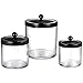 ✅WELL MADE AND PERFECT SIZE - The sleek canisters have classy and simple look, crystal clear, excellent quality. The black design is very cool and makes the bathroom and vanity even more distinctive. The ball handle on the top of the jar is a unique design and easy to use. These containers were the finishing touch that you needed for your bathroom counter! The perfect size for storing small items and saving space, keeping bathrooms, vanities,bedroom,and other hard-to-organize areas dry and tidy.