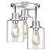 【Modern Stylish Design】A design mixed with industrial and contemporary elements which have a brushed nickel finish and clear glass shades. This close to ceiling light fixtures light complements most home decoration styles and is perfect for the kitchen, entrance, hallway, dining room, living room, laundry room, balcony, and more.