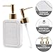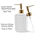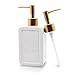 Stylish Container: Classic rectangular white ceramic bottle with embossed text and gold matte pump, this soap dispenser will become a practical and charming decoration in your home.