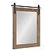 RUSTIC FARMHOUSE MIRROR: The Cates mirror features a barn door-inspired design with a rustic brown finish and black iron bracket inspired by sliding barn doors