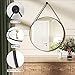 Round Hanging Mirror: Our round mirror made of aluminum alloy frame and leather strap for hanging , instead poor wood or cheap rubber. The thickness of frame are 0.7 inch, excellent handcrafted features and thinner frame make the mirror look more elegant and exquisite, making any wall look incredible. And waterproof craftsmanship makes it withstand at your bathroom environment for a long time.