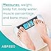 MEASURES: The InnoHaus ABF220 Body Analysis Scale measures weight and determines the percentages of body fat, water and muscle