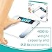 HIGH-END FUCTIONS: Made of high quality impact-resistant tempered glass that is 4 times stronger than common glass, and 4 high precision sensors for accurate weight measurements up to 400lbs/180kg, 3-unit modes (kg, lb, st:lb).