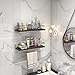 EACH BATHROOM WALL SHELF features protective metal guards, ensuring your toiletries stay in place. Use our bathroom wall shelves for bathroom supplies, as a bathroom towel shelf, or use in the kitchen to store your herbs and spices.