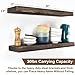 【Larger Floating Shelves for More Wall Space】- Our large floating shelves for bathroom size at: 24''x 6''x 1.5'', much longer, thicker and wider than other ordinary floating wood shelves. More added wall space allow you laying out towel and toothpaste in bathroom, showcasing collectibles and art work in living room, exhibiting family photos in bedroom, organizing jars and bottles in kitchen, using as bookshelf in study room.