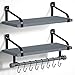 Practical coffee bar shelves -- well-organized coffee cups rack with 8 removable hooks and solid wood bar, creating a space for enjoying coffee time.