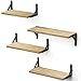 ♛Multiple installation methods: Our floating shelf suitable for creative person, Firstly, unique triangular brackets design offer two display forms, install board on top of brackets or below; Secondly, set of 4 wood wall shelves could be install 1 + 1 + 2, 2 + 2 or 1+1+1+1, etc combinations, play your imagination