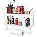 Versatile kitchen shelf - This kitchen organizer shelf will also be a stunning addition to your kitchen, organize your cooking utensils, mugs, pot and pan with hooks, spice and cans could be organized in wood board. This shelf also used as a paper towel holder when remove the hooks.