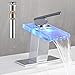 WATER-EFFICIENT & ECO-FRIENDLY: Bring your bathroom to life with the 4 inch centerset single handle LED bathroom faucet from Avsiile. Stunning chrome finish and color changing LED lights complements to any modern décor. AVESIILE LED Faucet helps to save water by indicating temperature instead of allowing the water to run and stopping to check temperature as it heats. It also helps to avoid temperature surprises by providing a clear visual indication of temperature range.