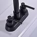 FAUCET -- Matte Black finished, scratches and corrosion resistant. 360-degree swivel spout offers more clearance and better access to the sink. 2 handle, 3 hole, 4 inch deck mounted, a standard 4" centerset bathroom faucet for easy installation. cUPC certified American Standard 9/16-24 UNEF connectors water supply lines to angle valve