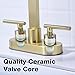 2 handle gold bathroom faucet with quality drip-free ceramic cartridges, precise to control hot and cold water temperature and volume