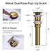 Metal overflow drain include, a coordinating brushed brass gold pop up drain is conveniently included, fit for both 1-5/8" and 1-3/4" drain opening. cUPC hot cold water supply lines and quick connect hose assembled for hassle-free installation