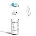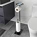 [PERFECT BATHROOM STORAGE] This freestanding toilet paper holder is the perfect partner for your wall mount tissue roll holder. Just pick up 1 roll of toilet paper then refill the wall toilet paper holder quickly and easily