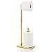 FREE STANDING DESIGN: This free-standing toilet paper holder and dispenser is easy to move anywhere in the bathroom; Perfect for bathrooms with no wall mount fixtures; Perfect for small bathrooms, guest bathrooms, half bathrooms and powder rooms
