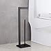 ✔ High Quality - This freestanding toilet paper holder is made of high quality stainless steel, corrosion resistant and rustproof, suitable for humid environments such as bathroom and kitchen. Matte black finished brings additional decor to your bathroom.