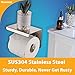 PREMIUM MATERIAL: Toilet paper roll holder with phone shelf + 2 pcs adhesive towel hooks are made by premium grade SUS 304 stainless steel, thickness 1.5 mm (1/16"), ensuring its durability and dependability. Never rust under any circumstance. Our products are definitely necessities for home apartment bathroom essentials