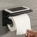 Toilet Paper Holder with Shelf - This toilet paper holder has a large storage shelf, which can hold some bathroom accessories such as phone, small plants, keys, watches, glasses, wet tissue and air freshener. Special front folding design of this black toilet paper holder to prevent the slipping of everything you put. This toilet paper holder with shelf can be applied in the bathroom or washroom.