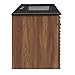 Product 1: QUALITY CONSTRUCTION - Sitting atop tapered legs, this vanity features an MDF and particleboard frame with walnut grain laminate for a solid construction with practical functionality