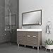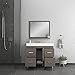 Vanity comes fully assembled with brushed nickel hardware and it has an open back for easier installation.