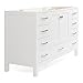 INSTALLATION: The vanity cabinet will arrive fully assembled. Open back for easier installation. The countertop is not attached to the vanity. You will need to attach the sink to the countertop and countertop to the cabinet. Countertop is pre-drilled for a 3-hole faucet 8" widespread. 1 ceramic rectangular UPC certified undermount sink included. Please scroll down the page to product guides & documents for Installation & spec files. Single center sink configuration. White painted finish