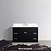 INSTALLATION: The vanity cabinet will arrive fully assembled. Open back for easier installation. Countertop is not attached to the vanity. You will need to attach the sink to the counter-top and countertop to the vanity cabinet. Countertop is pre-drilled for a 3-hole faucet 8" widespread. 1 ceramic rectangular UPC certified under-mount sink included. Please scroll down the page for installation and specification manuals . DIY or professional installation is an option. Center Sink