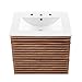 WALL-MOUNT VANITY - Mounting directly to the wall, this vanity features an MDF and particleboard frame with walnut grain laminate for a solid construction with practical functionality