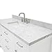 COUNTERTOP: Luxury Italian Carrara Marble featuring shades of white and gray. Polished finish for a sophisticated modern look. 1 ceramic oval UPC certified undermount-sink included with overflow. No faucets or mirror included. Center sink configuration