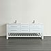 Contemporary Design Details — An Eviva bathroom sink vanity combines modern elegance with high functionality. These bathroom vanities are made in natural wood with white finish and accented with brushed nickel hardware