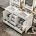 Firm and Efficient — This 48 inch vanity comes with a high-quality white porcelain sink and marble countertop that prevents backsplash. The bathroom sink with cabinet has soft-closing doors and dovetail drawers that are made of stainless steel. Also, it has an exposed back panel for easy plumbing access.