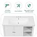 [Bathroom Vanity with Ceramic Sink]The elegant white ceramic sink with rounded basin is equipped with an integrated overflow and three hole faucet mount. Half-moon shaped design ceramic sink extends boundary almost to the edge to make a large sink. Ceramic is so easy to clean that you can keep it smooth and shinning effortlessly.