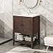 [Ample Storage Space]This simple and practical design freestanding bathroom vanity features a cabinet and an open style shelf for storing bathroom essentials. Both the cabinet and the open bottom shelf are spacious, and both offer enough space to most necessities used in bathroom. With a hollow-out design MDF board, the open bottom shelf is a perfect place to accommodate bath towels or some daily chemicals such as shampoos.