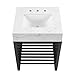 QUALITY CONSTRUCTION - Sitting atop tapered legs, the vanity features a wood and MDF frame with stunning laminate. With 8" centerset faucet holes, the curved ceramic basin aligns style and function