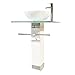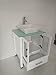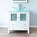 White Tempered Glass Top, White Ceramic Vessel Bowl, Wooden Pedestal with Stainless Steel Cover and Shoe