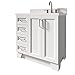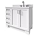 【Easy Installation & Packing】. This white freestanding bathroom vanity needs easy assembly with clear instruction manual.All hardware(screws,metal door hinges and handles,drawer slides,anti tipping device etc.) and instruction manual are provided. You can easily install it according to the instruction. For safety, the ceramic sink is individually packaged for shipping, so there are 2 packages for this vanity.