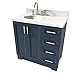 MATERIAL: This 37" inch bathroom vanity is made of Solid Hardwood & Plywood construction. It is the most durable and sturdy wood material for bathroom cabinets. If moisture and humidity levels are controlled, it can last indefinitely. Another advantage of plywood is that it will resist expansion and contraction with moisture accumulation and temperature changes. No cracking, warping or paint peeling.There is NO MDF or cheap particle board on the entire vanity. Midnight Blue Painted. Left Offset