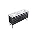 Features two drawers, a sliding cabinet drawer, soft-close drawer glides and hinges, and included black hardware